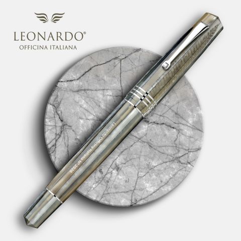 Gama de stilouri Momento Zero Grande are un design nou de la Leonardo si foloseste rășina italiana cunoscuta sub denumirea „spaghetti” taiata vertical, obtinand astfel o textura de dungi sau mosaic, cu un aspect vintage din anii 1930.