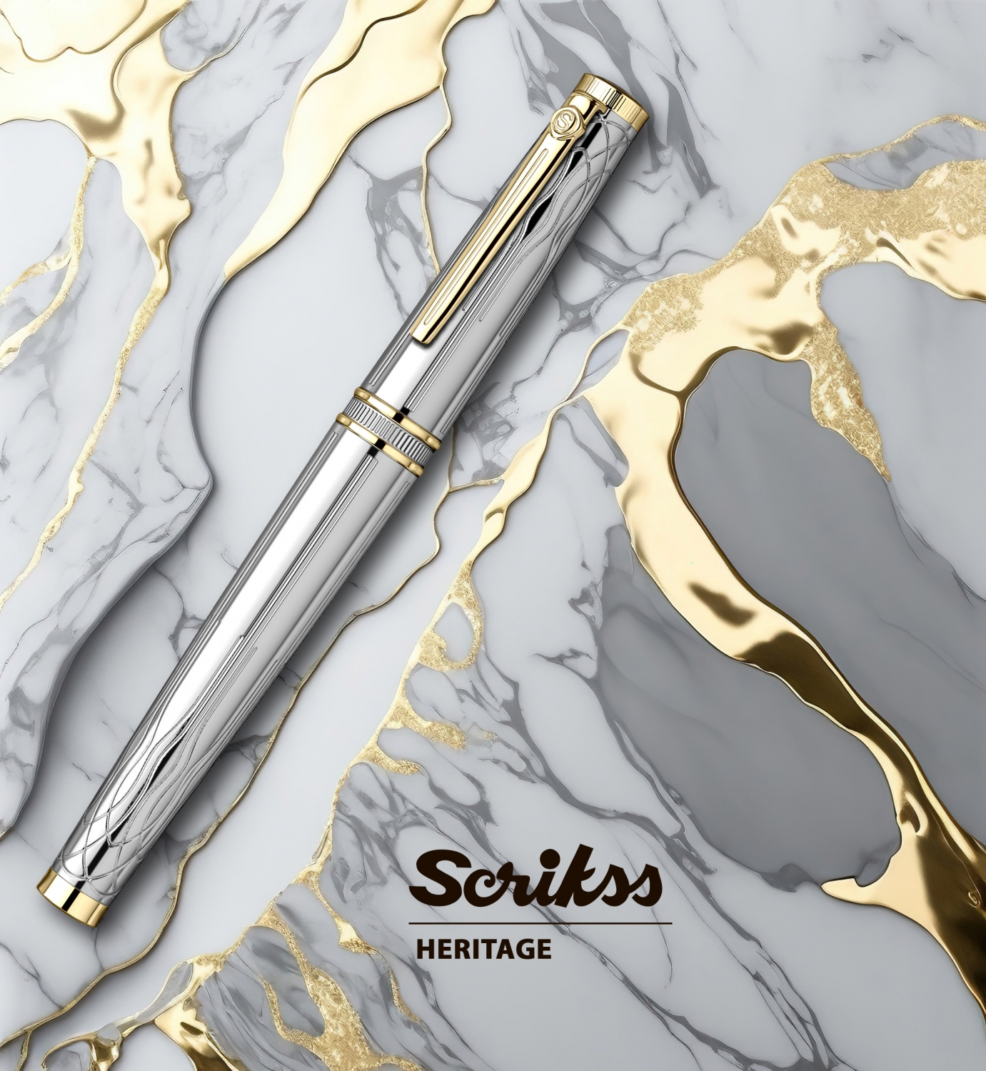 Combinarea finisajului argintiu lucios cu accesoriile aurite nu este întâmplătoare; fiecare detaliu al stiloului Scrikss Heritage Custom Chrome Gold Trim poartă o semnificație profundă. Argintiul, simbol al clarității și eleganței, se îmbină perfect cu auriul, reprezentând lumina, bogăția și noblețea. Împreună, aceste culori creează o estetică atemporală, reflectând un echilibru subtil între lux și sobrietate, modernitate și tradiție.